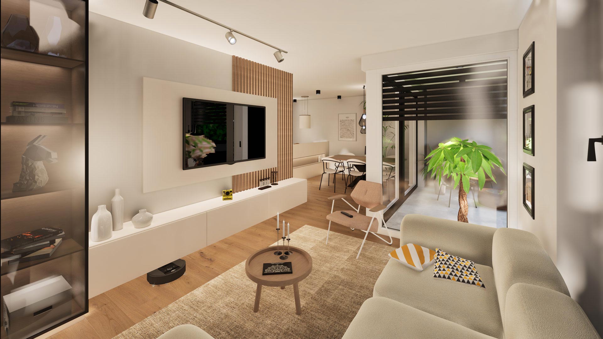 Svetlo in funkcionalno zasnovano trisobno stanovanje vključuje predprostor, utility, kopalnico, spalnico, sobo, skupni dnevni prostor s kuhinjo in jedilnico ter južno orientirano ložo. Stanovanju pripadata dve lastniški parkirni mesti: eno zunanje, pred objektom, in drugo pokrito, v kletni etaži, s predpripravo za električno polnilnico in shrambo.