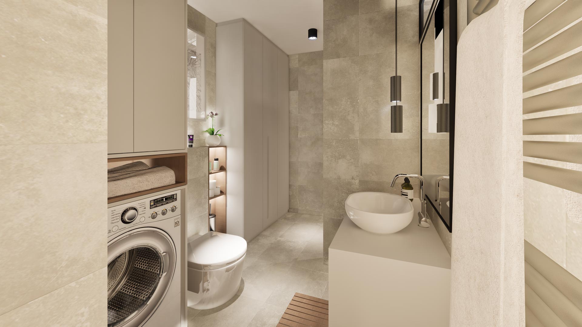 Svetlo in funkcionalno zasnovano dvosobno stanovanje vključuje predprostor, kopalnico, spalnico, skupni dnevni prostor s kuhinjo in jedilnico ter ložo. Stanovanju pripadata dve lastniški parkirni mesti: eno zunanje, pred objektom, in drugo pokrito, v kletni etaži, s predpripravo za električno polnilnico in shrambo.