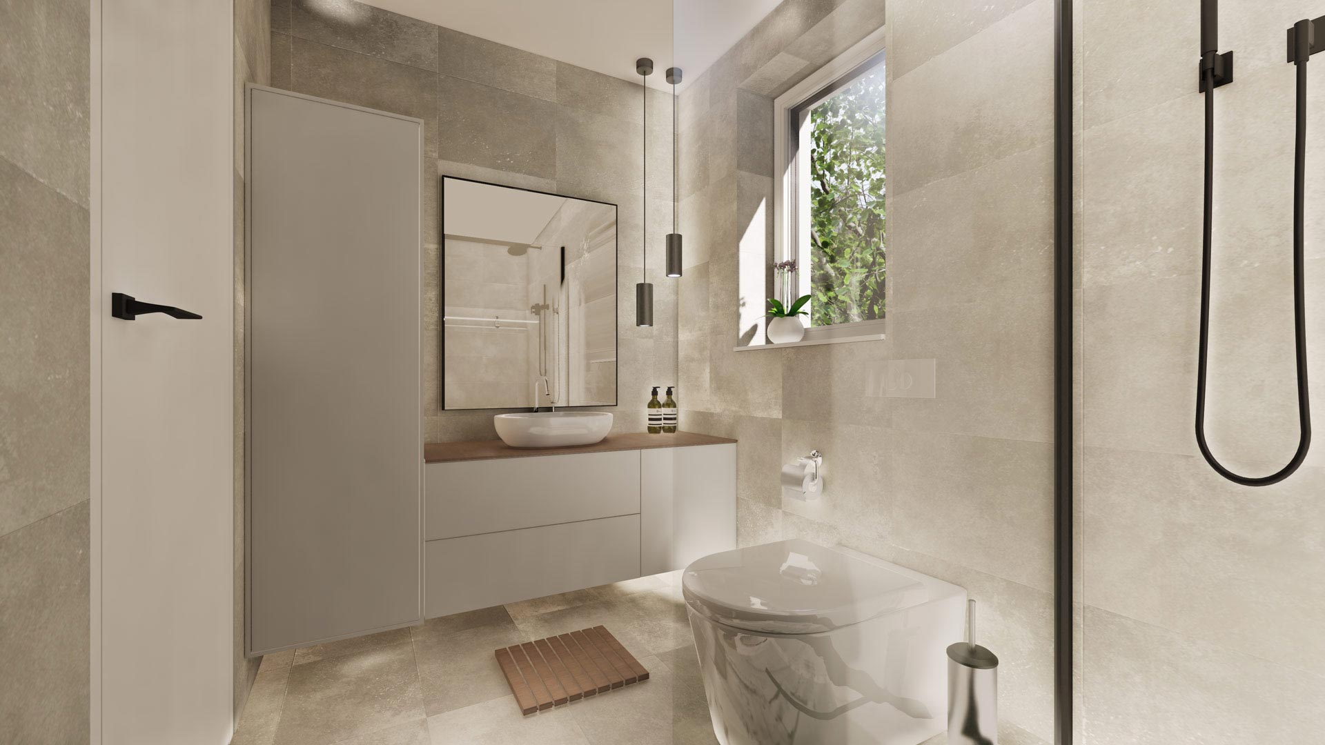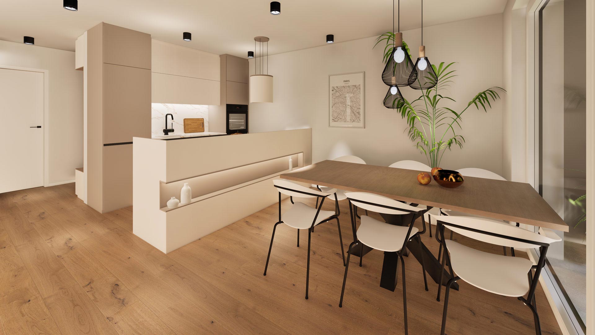 Svetlo in funkcionalno zasnovano trisobno stanovanje vključuje predprostor, utility, kopalnico, spalnico, sobo, skupni dnevni prostor s kuhinjo in jedilnico ter južno orientirano ložo. Stanovanju pripadata dve lastniški parkirni mesti: eno zunanje, pred objektom, in drugo pokrito, v kletni etaži, s predpripravo za električno polnilnico in shrambo.