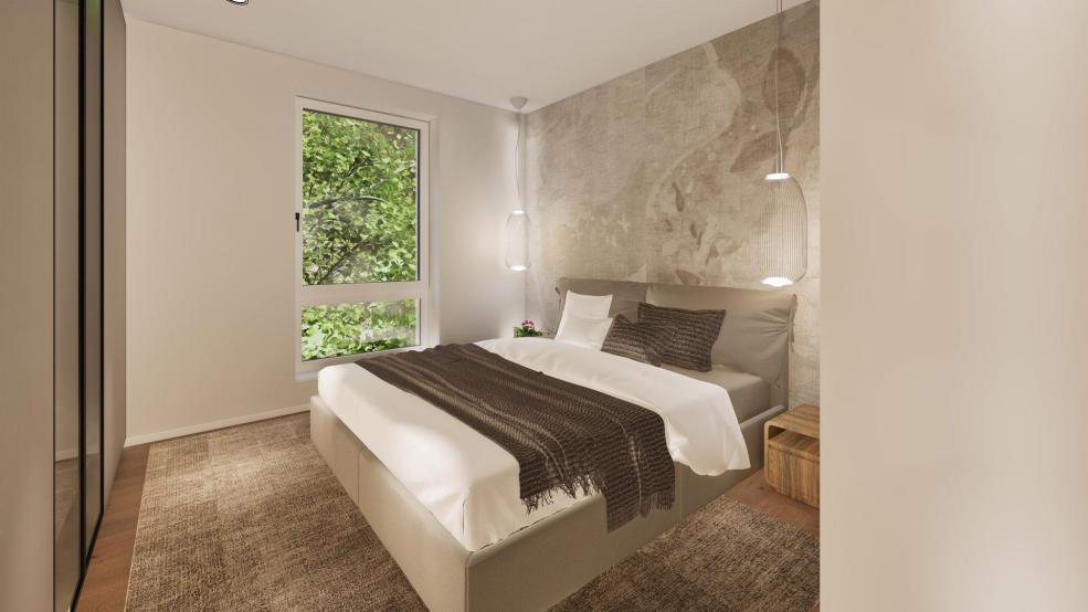 Svetlo in funkcionalno zasnovano trisobno stanovanje vključuje predprostor, utility, kopalnico, spalnico, sobo, skupni dnevni prostor s kuhinjo in jedilnico ter južno orientirano ložo. Stanovanju pripadata dve lastniški parkirni mesti: eno zunanje, pred objektom, in drugo pokrito, v kletni etaži, s predpripravo za električno polnilnico in shrambo.